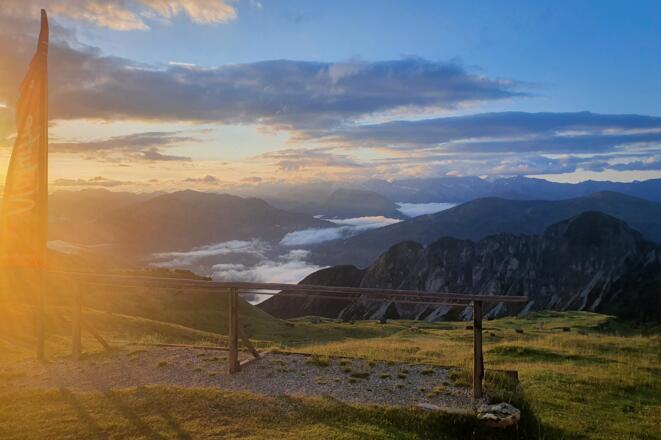 Ist das Wetter schlecht oder die Motivation schon etwas angeknackst, kannst du nach einem wunderschönen Sonnenaufgang auch direkt und ohne Höhengewinn nach Trins absteigen.