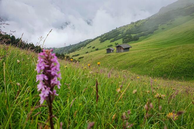 Auf der Nordseite ist die Peilspitze felsig und abschüssig, auf der Südseite läufst du über grüne Almwiesen hinab Richtung Blaser Hütte. Kurz vor der Blaser Hütte hältst du dich rechts und steigst auf markiertem Weg ins Bergsteigerdorf Trins ab. Hast du noch etwas mehr Zeit, kannst du natürlich noch der Blaser Hütte und dem Blaser einen Besuch abstatten. Er gilt als einer der pflanzenreichsten Berge der ganzen Region.