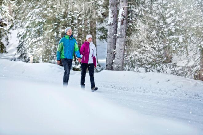 Immer wieder bewegt man sich auf der offiziellen Loipe und sollte daher auf Langläufer Acht geben!