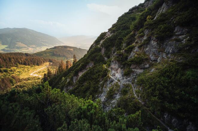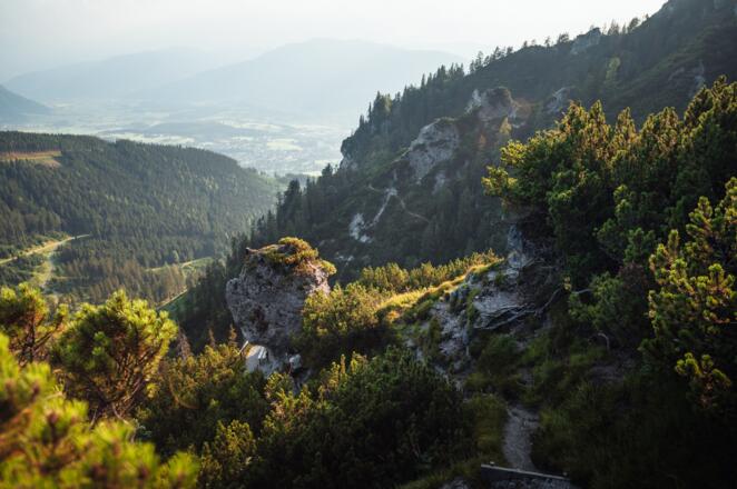 Vom Startpunkt am Parkplatz Bürgerau aus geht es zuerst den Forstweg entlang, dann steil hinauf bis zur Haidensperre und weiter Richtung Steinalm. Die Tour führt über teils sehr steile, ausgesetzte Passagen. An einigen Stellen müssen Leitern überwunden werden. Von der Steinalm kommt man über einen leichten Wanderweg wieder retour zum Ausgangspunkt an der Bürgerau.