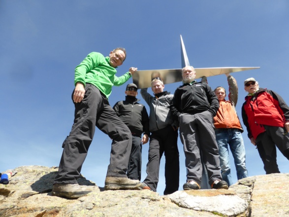In der Hauptblütezeit Juni / Juli ist das ganze Tal ein Blütenmeer. Von der Pforzheimer Hütte nach Westen entlng dem Bach beginnt der Aufstieg. Nach Hütte wird die Vegetation alpiner und Gräser / Flechten / niedere Büsche prägen das Landschaftsbild. An der Bergschulter vor dem Gipfelanstieg können wir unseren Weg durch das Gleirschtal nochmals bewundern. Bald stehen wir an dem modernen Gipfelkreuz der Haidenspitze 2.975m. Erbaut durch die Sektion Pforzheim im Jahr 2009 anlässlich des 100. Geburtstages von Frau Ruth Witzenmann.