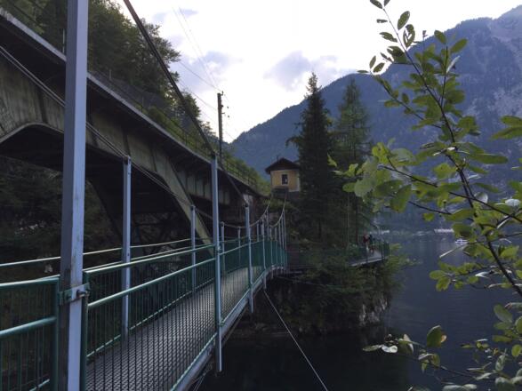 Die Tour zur Koppenwinkllacke führt auf einem guten Schotterweg entlang der Traun durch ein Naturschutzgebiet. Ein Steilstück lässt das Vorderrad durchdrehen, ansonsten gut befahrbar. Die Kopperlacke ist glasklar. Die Runde führt zurück zur Traunbrücke. Hier fahren wir ein Stück Richtung Bad Aussee entlang der Traun über eine Hängebrücke. Ein Steilstück lässt uns umdrehen, da wir auch noch die Ostseite des Hallstätter Sees machen wollten. Nach Obertraun gibt es entlang des Hallstätter Sees auch einige Steigungen. Nach der Bahn haltestelle wird es spannend. Der Radweg führt über einen Steg, der direkt über dem See liegt. Später kommt wieder ein Schotterweg, der teilweise ganz schön bergauf geht. Wir drehen um, da wir das letzte Schiff nach Hallstatt um 17:00 Uhr erreichen wollen. Das Schiff ist mit dem Handbike befahrbar. Ab Halltstatt schlängeln wir uns durch die ganzen Chinesischen Besucher und fahren auf dem Radweg an der Westseite zurück nach Obertraun.