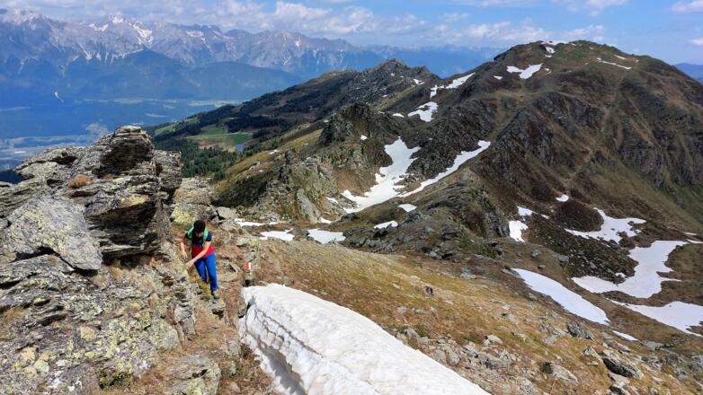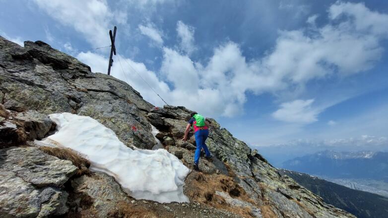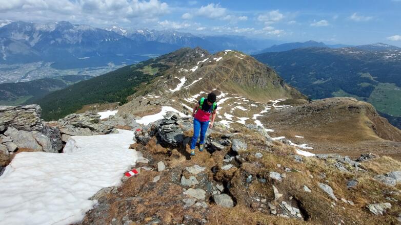 Haneburger oder Hanneburger? Beide Schreibweisen sind gebräuchlich, beide verweisen auf denselben Berg zwischen Wattental und Voldertal. Im ersten Teil des Anstiegs, bis über den Waz-Hochleger, sind wir auf einer Forststraße unterwegs. Dann führt ein Steig hinauf zum Kamm, steiler aber ohne Absturzgefahr. Zuletzt über den Grat auf den Gipfel mit einigen felsigen Passagen, die noch kein Kletterkönnen, nur Trittsicherheit erfordern.