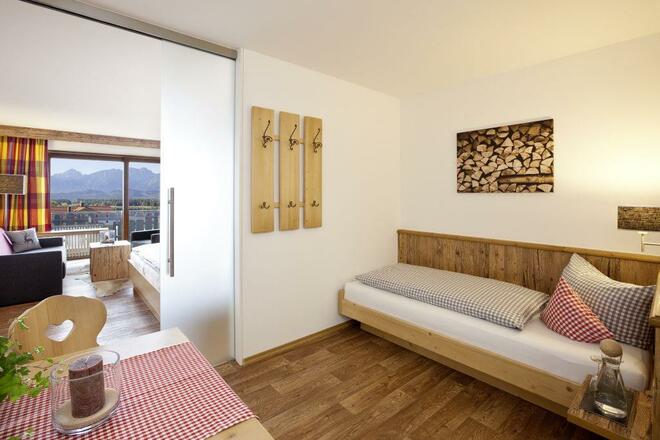 Bereits in der 4. Generation freuen wir uns, Sie in unserem schönen Hotel mitten im Allgäu, oberhalb vom Hopfensee mit Blick auf die Allgäuer Alpen herzlich begrüßen zu dürfen.Einzigartig...Traumhaft ist die Ruhe und der Blick auf die Königsschlösser, den Hopfensee und das Alpenpanorama. Wir bieten Hotelzimmer und Appartements für 1-6 Pers..Alles kann, nichts muss...Wir bieten Ihnen umfangreiche kulinarische Verpflegung an– dabei stammen die verwendeten Fleisch-/Wurstwaren vorwiegend aus eigener Herstellung und eigener Jagd. Ein tolles Frühstücksbuffet mit regionalen Spezialitäten und frisch gepressten Säfte garantieren einen tollen Start in den Tag! Abends verwöhnen Sie unsere Köche mit täglich wechselnden 4-Gänge-Menüs oder Themenbuffets.Wellness und Kur – pur...In unserer Wellnessabteilung verwöhnen wir Sie mit einem umfangreichen klassischen Therapiangebot, kosmetischen Anwendungen und ayurvedischen & fernöstlichen Massagen . Die Benutzung von unserem Schwimmbad ( 8x14m)SonstigesGerne benutzen Sie unser Schwimmbad mit Saunabereich und Kneipptretbecken kostenfrei. Vor Ort können Sie die Halbpension hinzu buchen.