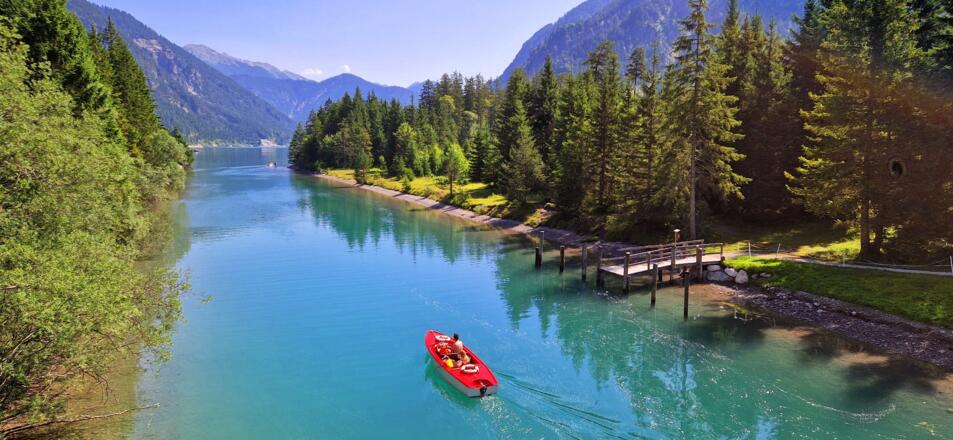 "Auf Heiterwanger und Plansee verkehrt eine der höchstgelegenen kommerziellen Schifffahrtslinien in Österreich, die von Ende Mai bis in den Herbst Rundfahrten anbietet. Zustiegsstellen sind bei den drei Hotels „Fischer am See“, „Forelle“ und „Seespitze“" Zitatende.