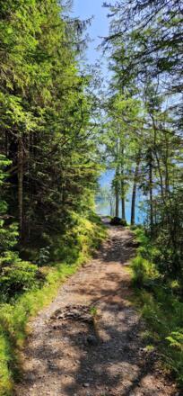 Am nördlichen Teil des Sees führt ein herrlicher Wurzelpfad direkt am See entlang; auf der südlichen Seite ein Fahrradweg/Versorgungsweg.
