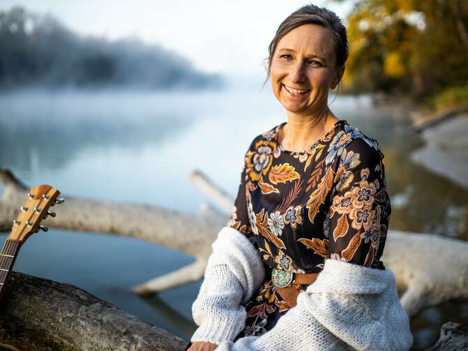 2013 mit Leib und Seele zu komponieren angefangen und dabei „so vui Erfüllung gfundn“, dass 2015 die erste CD mit dem Titel „Mitten im Lebn“ entstand.