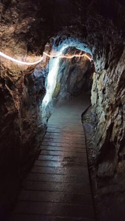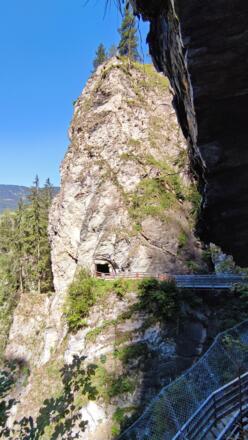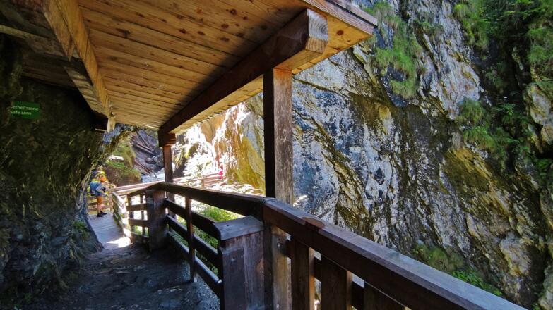 Der Weg führt an der Aussichtsplattform vorbei, durch einen Tunnel, Treppenanlangen und Brücken hinauf bis zum Ende der Klamm.