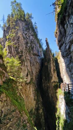 Auf dem Weg eröffnen sich faszinierende Blicke auf imposante Felsformationen, rauschendes Wasser und die anspruchsvollen Klettersteige der Kitzlochklamm.