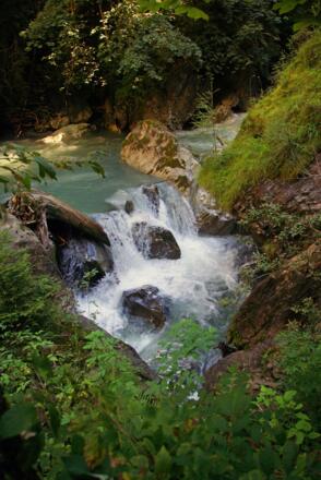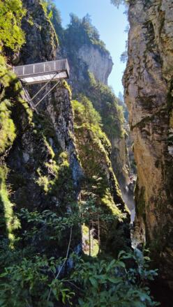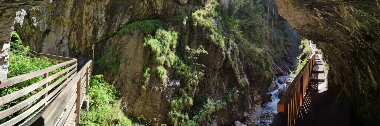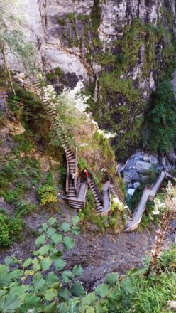 Dem Steig hinauf folgend, über Treppenanlagen und Brücken tauchen Sie ein in die faszinierende Landschaft der Klamm.