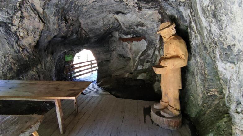 Vom Ende der Klamm ein Stück den bereits bekannten Weg hinab, rechts abbiegend über die Einsiedelei (Höhle) und weiter über den wildromantischen Waldweg zurück zum Ausgangspunkt beim Parkplatz Kitzlochklamm.
