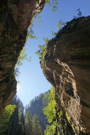 Einzigartiges Naturschauspiel mit zahlreichen idyllischen Buchten, hoch aufragenden zerklüfteten Felswänden, spektakulären Brücken und spannenden Ausblicken vom Klammauge, der neuen Aussichtsplattform.