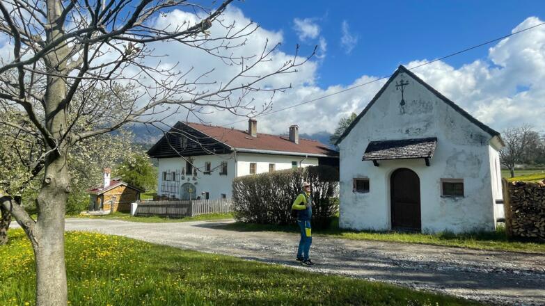 Start ist beim Parkplatz (gebührenfrei Stand 05/23) bei der Karlskirche. Wir gehen durch den südlichen Torborgen, der das Gebäude oberhalb der Straße mit der Karlskirche verbindet. Die Karlskirche gilt als eines der schönsten Roko-Bauwerke Tirols. Der gut ausgeschilderte Rundwanderweg folgt kurz der Volderwaldstraße und verlässt diese bei einer Weggabelung mit Wegkreuz. Nun kommt man zum Kriegerfriedhof am Tummelplatz, wo aus den napoleonischen Kriegen (1797 - 1809) Soldaten begraben wurden. Das Ensemble mit der Lourdeskapelle steht unter Denkmalschutz. Der weitere Weg führt über schöne Bauernwiesen nun wieder ostwärts am Lexenhof mit Hofkapelle (Lexenkapelle aus dem 18. Jhd., leider verschlossen) vorbei und wenig später wird Schloss Friedberg erreicht. Das imposante Bauwerk wurde um 1200 erbaut und ist im Privatbesitz und kann nur von außen bestaunt werden. Im nordöstlichen Eck vom Parkplatz leitet ein Wegweiser in die Klamm abwärts. Über Stiegen und Steige, am sogenannten Rafflsteig, geht es hinunter und man ist erstaunt hier eine derartig schöne Klamm vorzufinden. Am Volderbach unten angekommen gehts auf breitem Weg hinaus zur Johanneskapelle, die bei den ersten Häuser von Volders steht. Wir wandern ostwärts und folgen wenige Meter der Großvolderbergstraße aufwärts, biegen aber dann auf den Kröllnweg ein. Mit schönem Ausblick auf Volders und zum Schloss Aschbach (13. Jhd., privat) gehts ostwärts oberhalb vom Schloss vorbei. Über einen Wiesensteig wird die Dorfstraße (Hochschwarzweg) erreicht, die hier im südöstlichen Teil von Volders an den letzten Häusern vorbei ansteigt. Wir biegen links ab und folgen der flachen Straße durch eine kleine Apfelbaumkultur zu einem einzelnen Haus am Waldrand. Hinter dem Haus gehts gleich im Wald bergauf, an einem Fitnessparcours vorbei und so wird eine Aussichtsplattform erreicht, von der man einen unglaublichen Blick auf Wattens und ins Unterinntal geboten bekommt. Von dort, an einer weiteren Station des Fitnessparcours vorbei, geht`s in wenigen Minuten aufwärts ins Freilichtmuseum Himmelreich. Am Hügel wurde eine Rätersiedlung aus ca. 500 v.Chr. freigelegt und aufbereitet. An der Südseite des Hügels wandert man abwärts und mündet wieder in die bekannte Route ein, geht aber dann der Straße folgend ins Dorfzentrum von Volders. Eine kurze Besichtigung der Pfarrkirche und eventuell eine Einkehr unterbrechen den Rückweg zur Karlskirche kurz. Gut ausgeschildert führt der Weg durch Volders und am Waldrand zurück zum Startpunkt bei der Karlskirche.