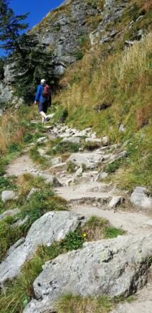 Von der Bushaltestelle in Sportgastein rechtshaltend / rechts vor dem Valeriehaus über den gut markierten und beschilderten Wanderweg Richtung Bockhartseehütte. Der Weg ist wunderbar schattig angelegt. Nach gut 300Hm, ca. 1 Stunde erreichen wir die Bochhartseehütte. Wir haben uns für die Umrundung des Unteren Bockhartsee über der südseitige Ufer entschieden. Nach einer kurzen Steilstufe queren wir über sumpfiges Gebiet auf die gegenüberliegende Hangseite und erreichen über den Zirmburgweg die Miesbichlscharte. Weiter mit Blick auf Bad Hofgastein üebr den Otto-Reichert-Weg kaum ansteigend zur Ortbergscharte. Einfacher ist die westseitige Umrundung des Zittauer Tisch. Wir nehmen den Gratweg mit kurzer Seilversicherung zum Gipfel des Zittauer Tisch 2.463m mit toller Tal- und Fernsicht. Nach dem Tischkögel 2.409m gehts steil etwas felsdurchsetzt zur Abzweigung Otto-Reichert Weg und unschwierig über das Skigebiet zur Bergstation der Stubnerkogel Bahn.
