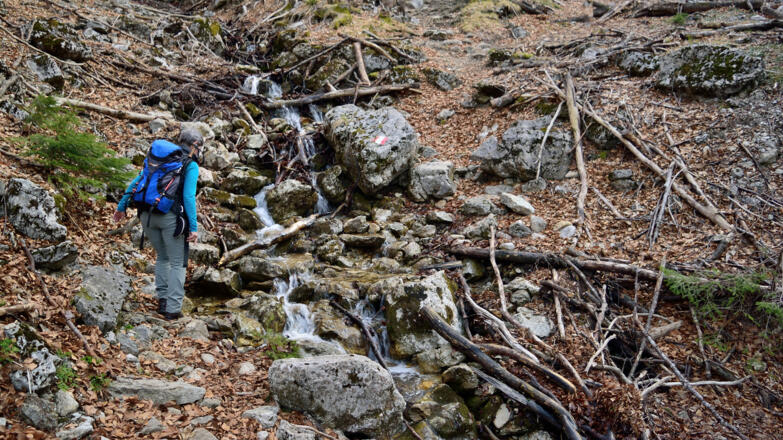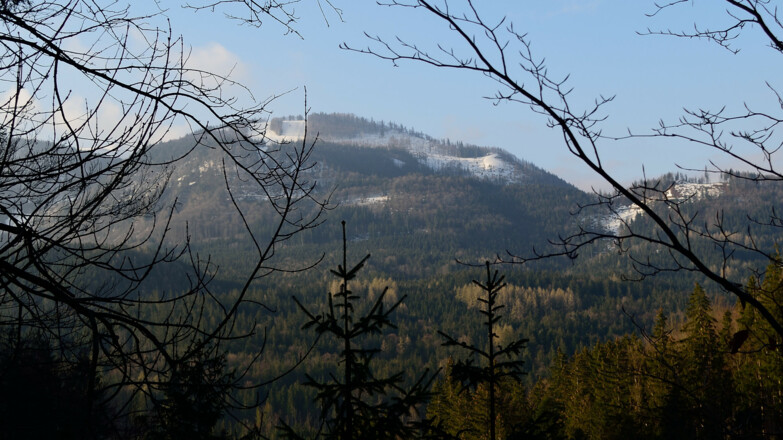 Vom Gasthaus Enzianbachmühle führt der Forstweg nach norden in den Wald. Schon bald zweigt ein Steig ab. Auf der anderen Seite der Forststraße rauchst einkleiner Wasserfall den Hang hinunter. 10 Min. später queren wir den Bach und das Gelände wird zusehens steiler. Im Buchenwald rascheld das alte Laub unterunseren Füßen. Hinter uns schaut der Windhagkogel zu uns herüber und ab und zu läßt der Wald einen Blick zum Toten Gebirge zu. Nach vielen Serpentinen erreichen wir eine Jagdthütte. Wir genießen den Blick nach Süden zum Kasberg. Man erkennt noch gut die Skipiste unterhalb vom Spitzplaneck. Dahinter türmen sich die schneebedeckten 2000er vom Toten Gebirge auf. Wieder durchwandern wir blätterlosen Buchenwald. Sonnenstrahlen durchfluten den Hang und überall sprießt der Bälauch. Beim nächsten Wegweiser verlassen wir den Wald und kommen nun zum schönsten Teil der Tour. Ein felsdurchsetzter, baumloser Grat mit Totholz zieht nun hinüber nach westen zum aussichtsreichen Gipfel. Zurück geht es wieder auf der selben Route. Wir wollten noch auf den Rauhkogel konnten aber wegen noch zu viel Schnee leider nur ein kurzes Stück dem Pfad folgen.