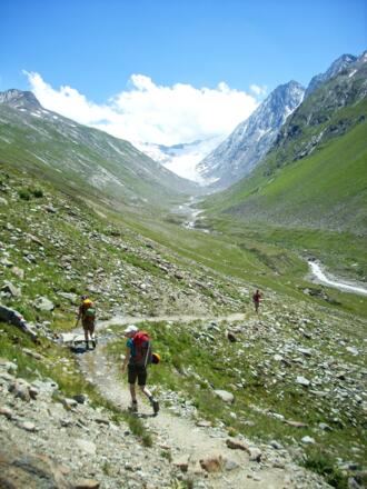 Der Aufstieg zum Hochwildehaus (seit 2016 geschlossen) ist landschaftlich von vielen Facetten geprägt. Einerseits die Almwiesen und andererseits die Gletscherwelt des Ötztals.