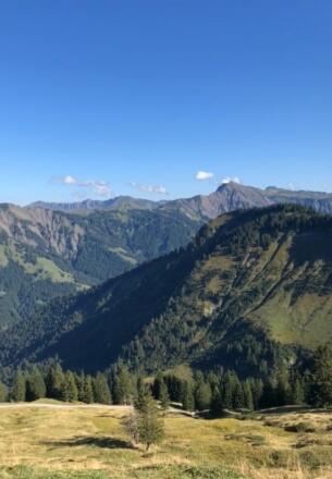 Wanderung durch Wald- und Weidegebiet, ss handelt sich um einen Bergwanderweg mit zum Teil leichteren Abschnitten.
