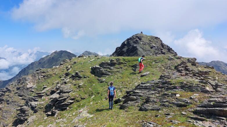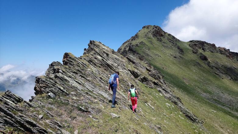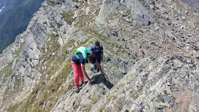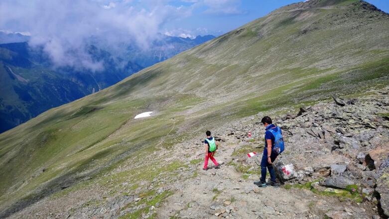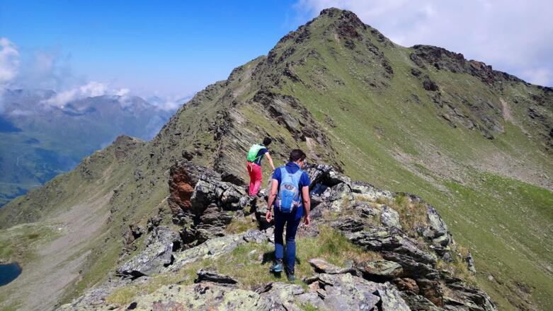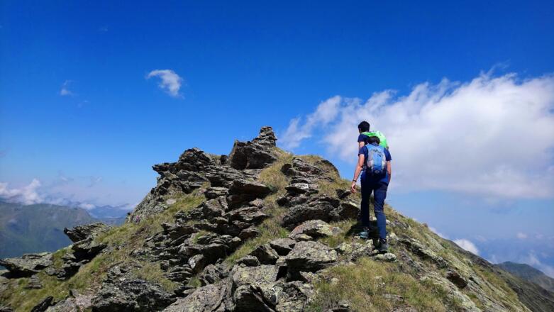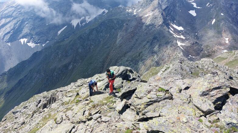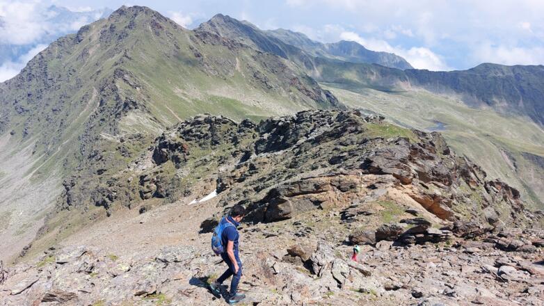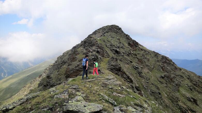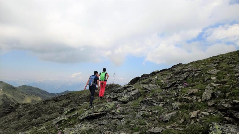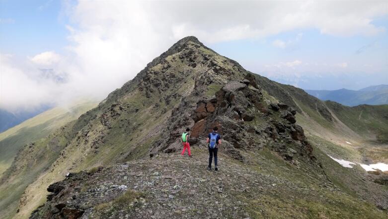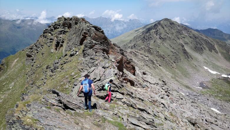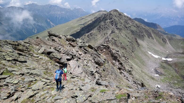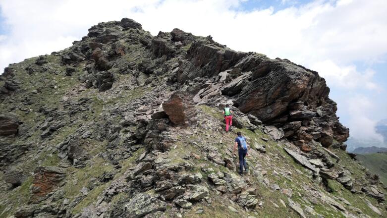 Ab hier weglos auf die Hohe Röte. Dann in nördlicher Richtung zwei Kilometer dem Gratverlauf folgen - über den Gallwieser Mittergrat ( 2841 m) zum Roten Kogel (2834 m). Wieder auf markiertem Weg zurück nach Praxmar.