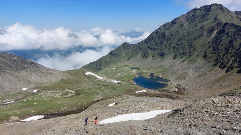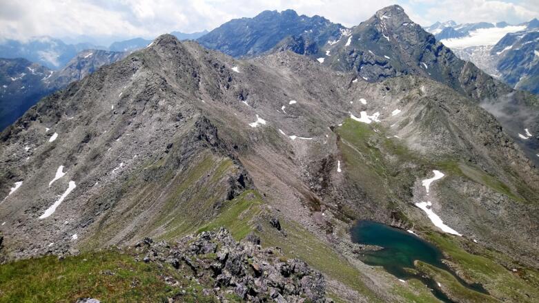 Tolle Rundtour, über weite Strecken weglos. Ein einsames Hochtal mit blaugrünen Bergseen und ein langer Grat über drei Gipfel als Highlights.