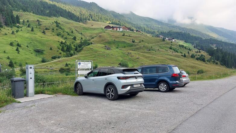 Kostenpflichtiger Parkplatz an der Straße bei den Fischteichen.