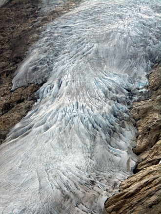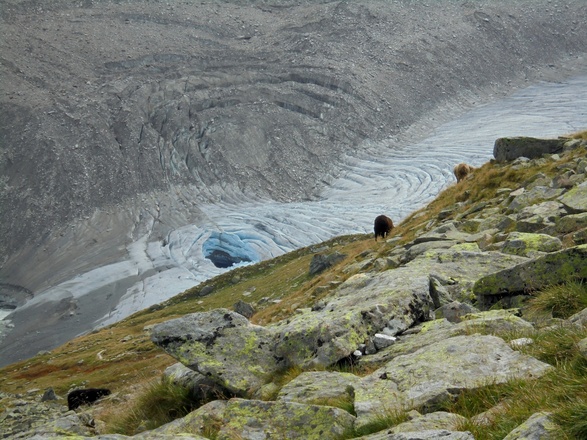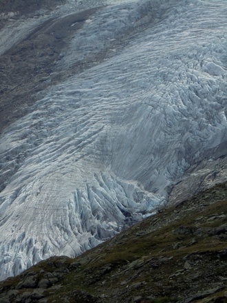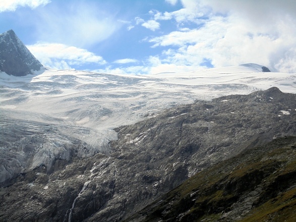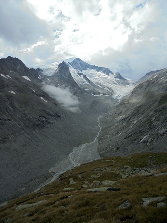 Schließlich geht es steil hinab zum Viltragenbach und kurz danach auf der anderen Bachseite wieder hinauf zur Alten Prager Hütte.Hier bieten sich grandiose Ausblicke auf das vom Großvenediger herabkommende Schlatenkees. Der Schlußanstieg führt schließlich zur Neuen Prager Hütte.