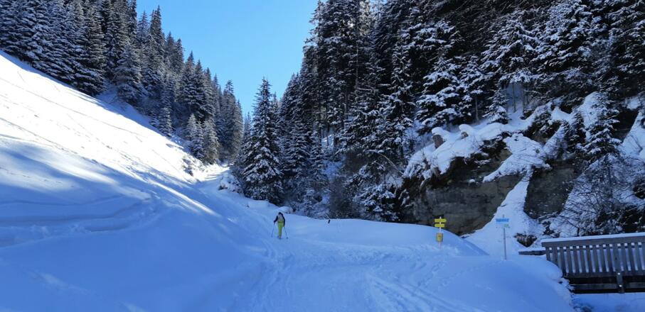 Abfahrt: Entweder wie beim Aufstieg oder bei sehr sicheren Verhältnissen als Überschreitung auch direkt vom Gipfel nach Nordwesten zum Lahneregg, weiter talaus zum Obernberger See und zum Parkplatz Obernberger See. Von hier per Autostopp oder mit dem Skibus retour zum Ausgangspunkt.