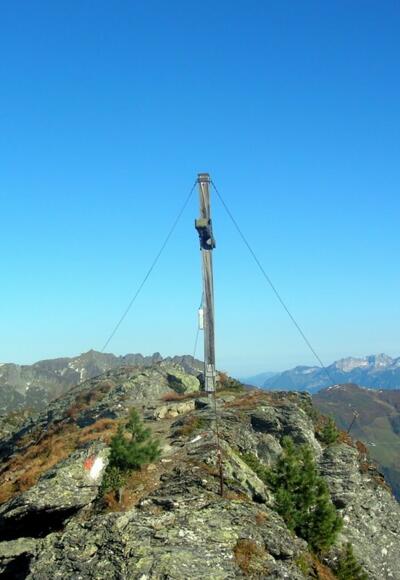 "Diese Kapelle wurde in Gemeinschaftsarbeit unter Mitwirkung aller Vereine u. Körperschaften mit grosser Unterstützung von Freunden und Gönnern und freundlicher Genehmigung des Almbesitzers Johann Fischler im Sommer 1984 zum Gedenken um die Freiheit Tirols 1809-1984 errichtet und zu Ehren des Heiligen Hubertus am 2. September 1984 feierlich eingeweiht.