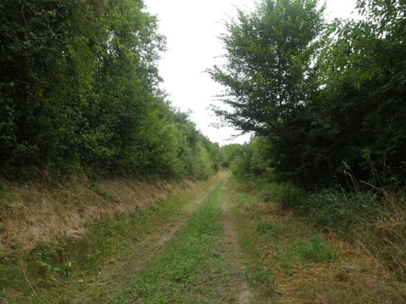 Wanderer wenden sich nordöstlich zur Ritzberger Straße. Nach wenigen Metern geht es weiter auf die Strüther Straße, die ganz leicht bergan ortsauswärts führt. Am letzten Gebäude leicht rechts halten: Wir wandern durch einen alten Hohlweg parallel zum Rippbach hinter der Firma ITW vorbei. Dies ist das einzige Wegstück, wo man mit dem Kinderwagen etwas Geschick walten lassen muss – es ist ein Feldweg.