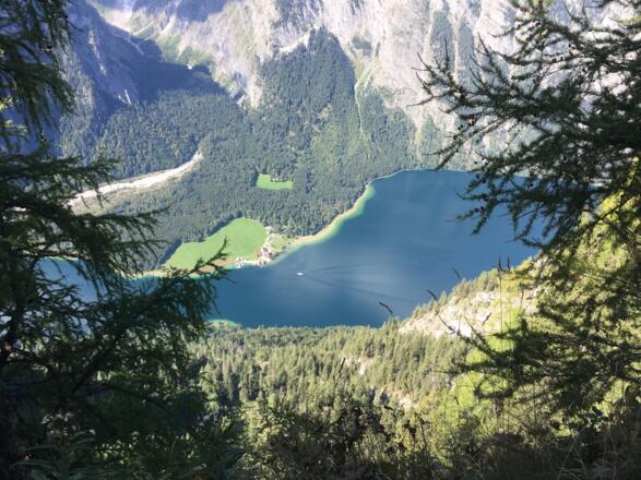 Von der Talstation der Jennerbahn in Schönau a. Königssee zu Fuß zum Bootsanleger am Königssee. Weiter mit dem Boot nach St. Bartholomä (ca. 30 Minuten) - von dort über die Saugasse zum Kärlingerhaus (Übernachtung). Ein mittelschwer zu gehender Bergweg.