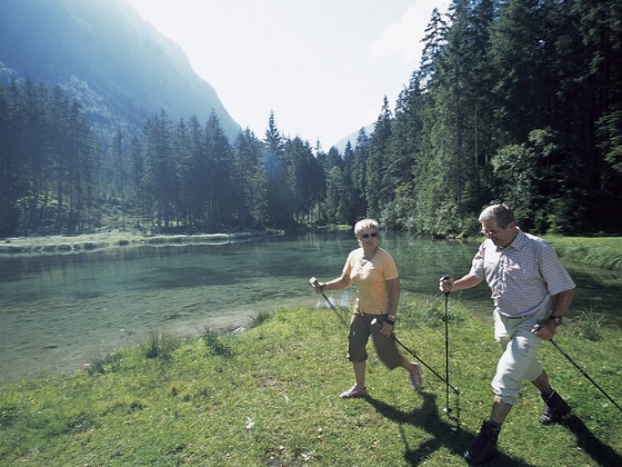 Vom Parkplatz beim Gasthof Siggen aus (ca. 7 Fahrmin. vom Wanderhotel Gassner) wandern Sie bis zu unserem wunderschönen Blausee, der bereits zum Verweilen einlädt. Nun folgen Sie ca. 1 Stunde einem Forstweg bis zu einer Abzweigung (re. Hopffeldboden) und halten sich links. Der Forstweg geht nun in einen schmalen Wald- und Almweg über, dem Sie ca. 1 Std. folgen, bis Sie beinahe die Baumgrenze erreicht haben und zur Kampriesenalm kommen. Von dieser aus geht es nun kurz über einen breiteren Almweg und gleich noch einmal über einen schmalen Waldweg zur Fahrstrasse Richtung Berndlalm. Auf dieser Fahrstrasse bleiben Sie nun ca. 20 min. und schon sind Sie am Ziel - bei der Berndlalm angelangt.