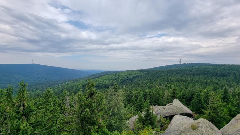 An der Weißmainquelle verlassen wir vorerst den E6 und orientieren uns entlang des Fränkischen Gebirgswegs in Richtung Ochsenkopf. Nach rund 150 weiteren Höhenmetern stehen wir auf dem Gipfel des Ochsenkopfes (1.024m).