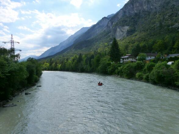 Bei Haiming überqueren wir den Inn und treffen am Nordufer auf das Raftingzentrum Magerbach, das vom klaren Wasser des hier rassig fliessenden Inn und dem einmaligen Alpenpanorama profitiert. Hier endet die Befahrung der wilden Imster Schlucht - also ein Eldorado für Rafter und Kanuten.