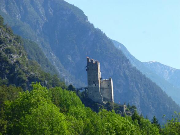 Von Richtung Haiming auf der rechten Innseite - Wanderweg am Inn (Inntalradweg) - «Römerbadl» Kneippanlage - Burschlkapelle - rechts Unterführung Bundesstraße 171 - Anstieg Trankhütte - durch den Wald nach Karres - vorbei am Sportplatz - Karres St. Stephanuskirche - nach dem Gemeindeamt rechts Abzweigung nach Karrösten - Abzweigung der VARIANTE nach Imst - Karröster Straße abwärts zur Königskapelle - Richtung Süden über die Innbrücke - rechts halten - vorbei am Umspannwerk Kraftwerk bis zum Bahnhof Imster Au - links neben der Bahnstrecke bis zum Rüsselbach - Ried - Schönwies - oberhalb von Schönwies im Ortsteil Obsaurs liegt die St. Vigil Kapelle - weiter Richtung Kronburg nach ca. 1 Stunde erreichen Sie die Ruine Kronburg.