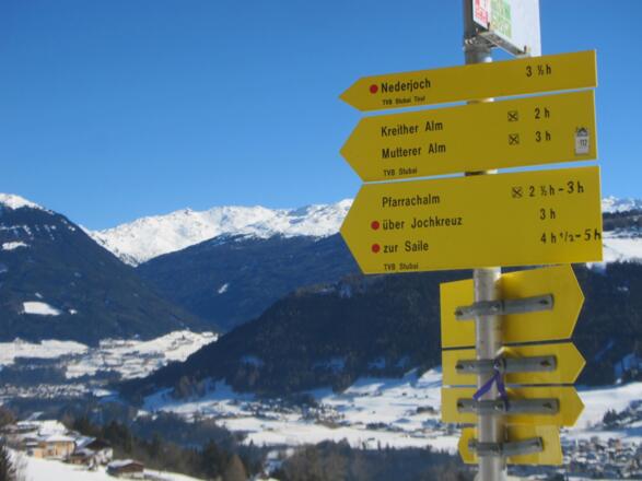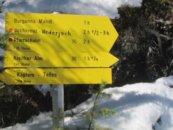 Von der Brennerautobahn A 13 in Schönberg abfahren und nach Telfes ins Subaital weiterfahren. Hier immer geradeaus durch den Ort. Im Ortsteil Kapfers bis zum beschilderten Parkplatz der Rodelbahn auf die Pfarrachalm weiterfahren.