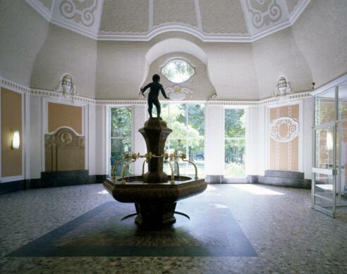 Die konzentrierte AlpenSole wird direkt in die Wandelhalle im Kurgarten zum wunderschönen Marmorbrunnen geleitet. Dort wird sie mittels Dosieranlage auf 0,5 bis 0,7 Prozent verdünnt. Sie können die warme und kalte AlpenSole mit einem Becher entnehmen, gurgeln um Ihren Rachen zu regenerieren oder selbständig eine Nasenspülung im Gurgelraum vornehmen