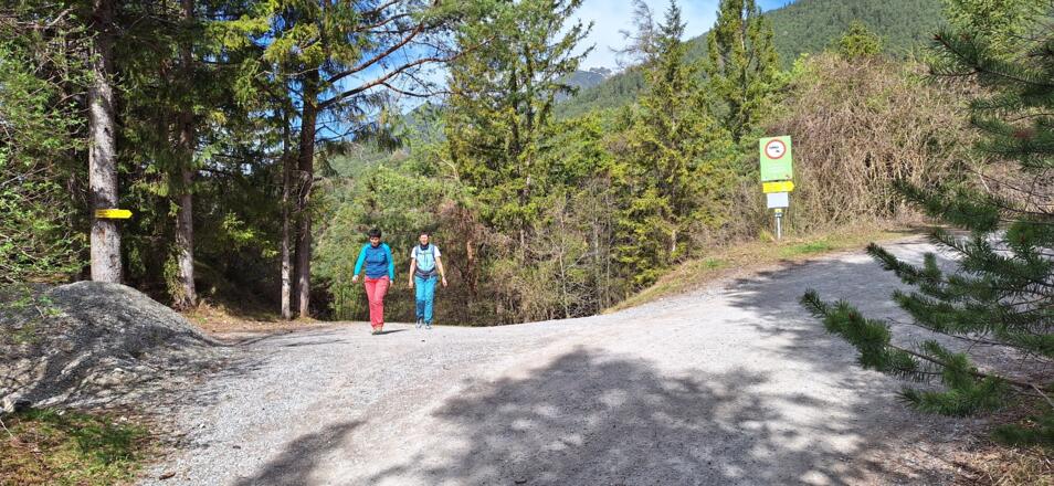Rückweg: wie Aufstieg entlang des Steigs bis zur Fahrstraße und auf dieser abwärts zurück zum Parkplatz.