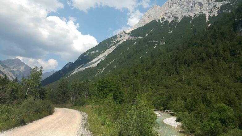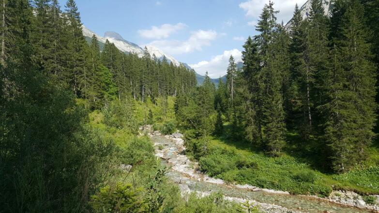 Startpunkt ist beim Naturpark-Infozentrum Scharnitz. Folgen Sie zunächst der Hinterautalstraße in Richtung Karwendeltäler. Nach ca. 500 m überqueren Sie die Isar. Nach der Brücke links abbiegen, ca. 50 m bergauf gehen, am Abzweig rechts ins Karwendeltal einbiegen und der Forststraße immer weiter folgen. Wer Zeit und Lust hat, kann einen kurzen Abstecher zur Birzlkapelle, einer kleine Kapelle im Wald (ca. 5 Min. ab Abzweig bis zur Kapelle) machen. Ebenso lohnenswert ist ein Abstecher zum Karwendelsteg (ca. 10-15 Min. ab Abzweig) mit Ausblick auf den imposanten Wasserfall des Karwendelbaches. Das letzte Wegstück, gestaltet sich als etwas steilerer Anstieg in weiten Serpentinen, vorbei an der Hochalm (unbewirtschaftet), bis man nach rund 18 km das Karwendelhaus und somit eine verdiente Rast, mit herrlicher Aussicht, erreicht hat. Rückweg auf gleicher Strecke.