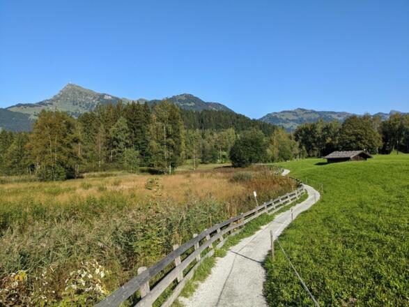 :: Auf ruhigen, schmalen Pfaden wandern wir über den Lutzenberg zum romantischen Schlosshotel Münichau aus dem 15. Jahrhundert und lassen dabei Lärm und Hektik des Alltags hinter uns. Weiter Richtung Osten erreichen wir nach ca. 30 Minuten den ersten Höhepunkt der Wanderung: den wild-romantischen Moorsee Gieringer Weiher mit grandioser Aussicht auf den Wilden Kaiser. Bei schönem Wetter nehmen wir ein erfrischendes Bad im erholsamen Waldbad (kostenpflichtig) und stärken uns danach mit feinen Köstlichkeiten im reizvollen Waldrestaurant. Das einzigartige Panorama des Wilden Kaisers stets im Blick, finden wir zur Ruhe und spüren ganz unsere Seele.