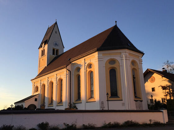 - An der folgenden Abzweigung halten Sie sich rechts und kommen bald an der Wallfahrtskirche von Wilparting vorbei. Ab jetzt geht es fast nur noch bergab. Bald rollen Sie auf eine T-Kreuzung zu, bei der man sich rechts hält, um kurz darauf links über die Autobahnbrücke Richtung Berbling zu fahren. Nun kommen Sie durch Pfaffing und halten sich gleich nach dem Weiler links und bei der nächsten Gabelung in Mainz fahren Sie rechts den Berg runter nach Berbling. Im Ortsende von Berbling biegen Sie wieder nach links auf den Radweg, auf dem Sie schon bei der Hinfahrt gefahren sind.