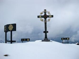 Friedenssymbol am Kleinen Gilfert: "Handreichung der Kulturen und Religionen" auf einem kleinen Tiroler Schiberg. Das Assemble wurde 2008 unter Leitung von Herbert Kirchmair von Häftlingen der Justizanstalt Innsbruck angefertigt.