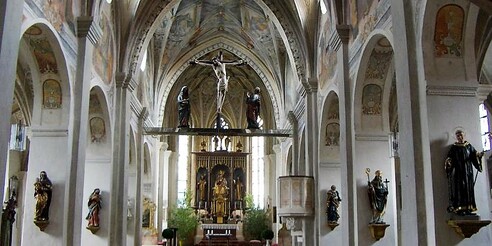 Die Klosterkirche St. Lambert und das ehemalige Benediktinerkloster Kloster Seeon liegen malerisch auf einer Halbinsel am Seeoner See.