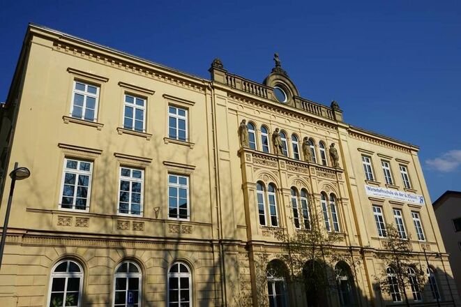 Am Ziergiebel der Königsschule (heute private Wirtschaftsschule Dr. Kalscheuer) thront die Büste von König Ludwig II..