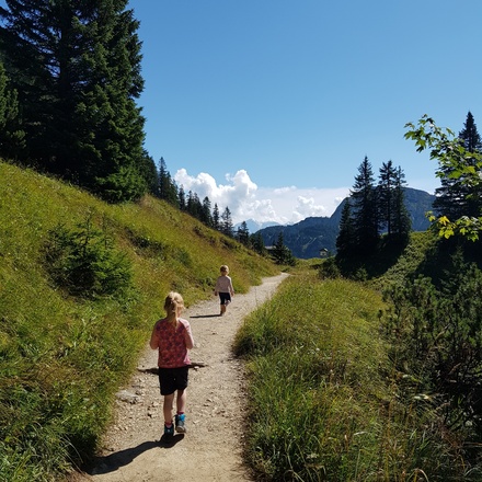 Panoramaweg für die ganze Familie mit spektakulären Ausblicken und unterhaltsamen Informationen über die Wander- und Jagdgepflogenheiten der bayerischen Königsfamilie. Mit ein bisschen Glück können Sie die Steinbockfamilie erspähen, die sich am Tegelberg niedergelassen hat.
