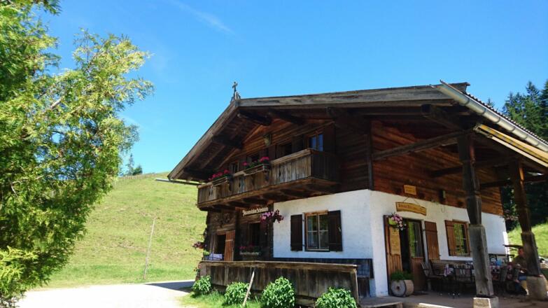 Zur Einkehr wartet die urige Achentalalm, die für einheimische Kost, wie "Brettljause" und Kaiserschmarren bekannt ist. (Die Spezialität "Nudeln" gibt es nur am Mittwoch Juni - September). Der Rückweg führt über das Pemberger Joch über Weg 25 und anschließend 24 zurück nach Oberau.