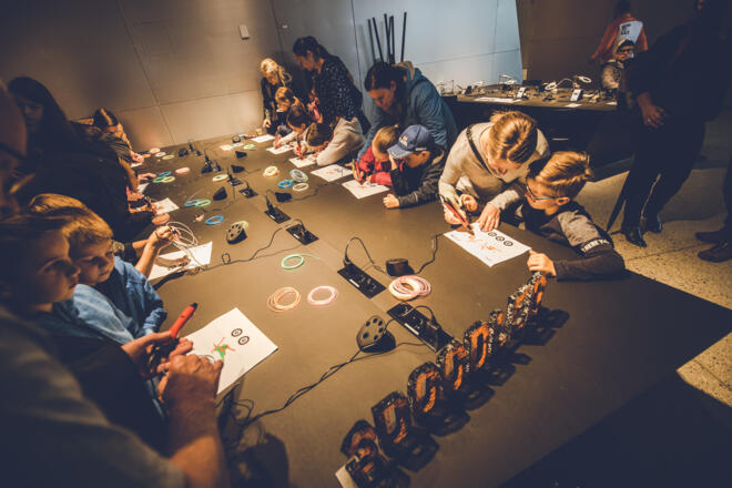 Auf der Rookie-Tour begeben sich die Jüngsten auf eine Rally durch die Ausstellungswelt der KTM Motohall. Vorbei an Simulatoren, Checkpoints und ihren Lieblingsfahrern. Über alle Ausstellungsebenen sammeln die kleinen Champions ihre eigenen Eindrücke und Erlebnisse und dokumentieren ihr Wissen in einem Booklet, das sie mit nach Hause nehmen. Das hauseigene Innovation Lab bietet im Rahmen von Workshops (unter Voranmeldung) für Kinder und Jugendliche Besonderheiten wie eine Design- und CAD-Software, einen 3-D-Drucker, einen 3-D-Scanner, einen Laser-Cutter, einer Doodle-, Löt- und Virtual-Reality-Station, wo die jungen Besucher die verschiedenen Design- und Produktionsprozesse hautnah auf spielerische Weise kennenlernen. Nicht nur zusehen, sondern erleben lautet das Motto. Termine und Tickets für die Innovation Lab Workshops finden Sie direkt hier!