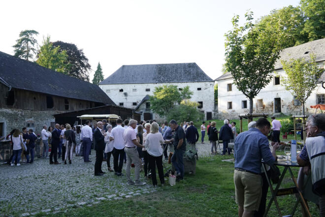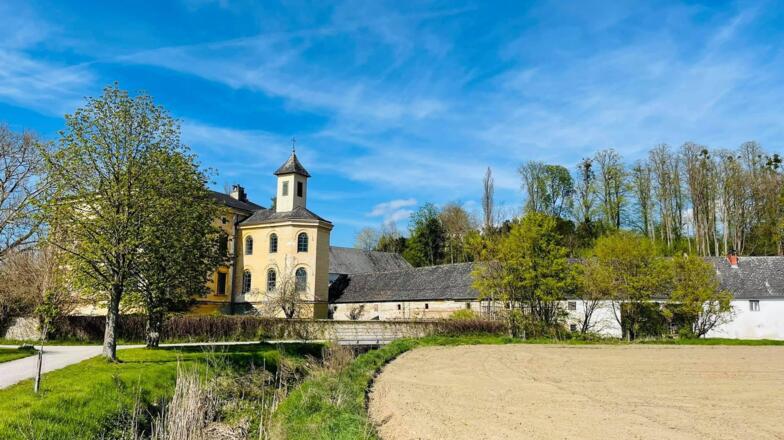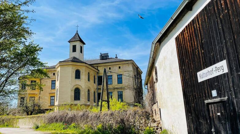 Nach 500 Metern liegt zur Rechten das Schloss Auhof und der Kulturhof-Stadl. Vor Ort führen Schilder und freundliche Helfer zu den Parkplätzen und dem Eingang des Theaters.