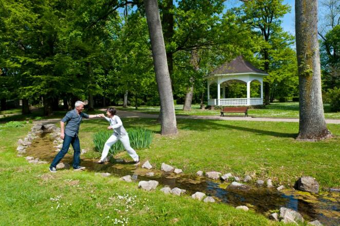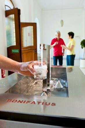 Das helle und lichtdurchflutete Kurhaus mit direkt anschließendem Kurpark ist heute sowohl ein modernes, ambulantes Therapiezentrum als auch ein Ort der Entspannung und Erholung. Das Kurhaus ist als ambulantes Reha-Zentrum für muskuloskeletale Erkrankungen zugelassen. Es bietet ambulante Reha- und Präventionsmaßnahmen wohnortnah für Einheimische und für unsere Gäste mit Unterbringung in Pensionen, Ferienwohnungen oder in stationären Kliniken. Muskelentspannungstraining, Ernährungsseminare und Bewegungstraining runden das Programm der Gesundheitsprävention ab. Im Kurhaus finden Sie zudem eine Arzt- und eine Naturheilpraxis. Die Naturheilmittelanwendung im Kurhaus hat sich auf Kneipp'sche Anwendungen, Inhalationstherapie sowie Natursole spezialisiert. Bewegungstherapie wie Krankengymnastik und Physiotherapie sowie Fitnessangebote ergänzen die Gesundheitspräventionsmaßnahmen hervorragend. Alle drei Heilquellen von Bad Neustadt a. d. Saale sind im Kurhaus gefasst. Das solehaltige Quellwasser der Elisabeth- und Bonifatius-Quelle können Sie vor Ort als klassische Trinkkur mit verdauungsfördernder Wirkung des Magen-Darm-Systems genießen, die Karl-Theodor-Quelle ist aufgrund ihres hohen Solegehalts ausschließlich als Badekur geeignet. Zu diesem Zweck wird aus 700 m Tiefe das Heilwasser der Karl-Theodor-Quelle heraufbefördert und die Gäste können das 33 °C warme Solebewegungsbad genießen. Mit den wohligen Massagedüsen verspricht es prickelnde Entspannung. Fachkundige Bewegungstherapien und Aromamassagen ergänzen die Anwendungen.