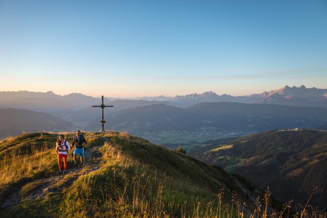 Auf dem Gipfel des Lackenkogels, dem "Hausberg" von Altenmarkt, eröffnet sich ein wunderschöner Rundblick auf die umliegende Bergwelt: Hoher Dachstein - Bischofsmütze, Hochkönig, Tennengebirge und Hohe Tauern mit dem Großglockner. Am Höhensteig nach Zauchensee zeigt sich eine einzigartige Alpenflora.