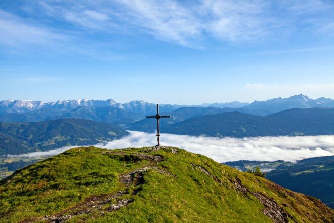 Der Lackenkogel ist der Hausberg der Altenmarkter: Von seinem Gipfel blickt man bis zum Watzmann und dem Großglockner.