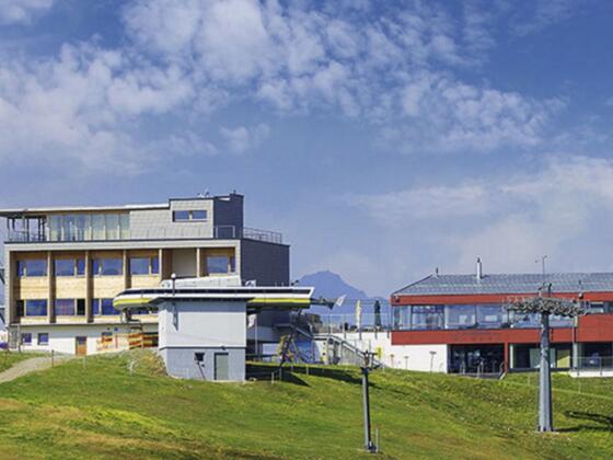 Man wandert bis an deren östliches Ende, folgt einem breiten Weg durch den Bannwald hinauf und quert den Doppelsessellift auf der Krahberg Südseite. Hier oberhalb der Waldgrenze ist der Weg quer über den Südhang und dann am Grat entlang gut einsehbar.